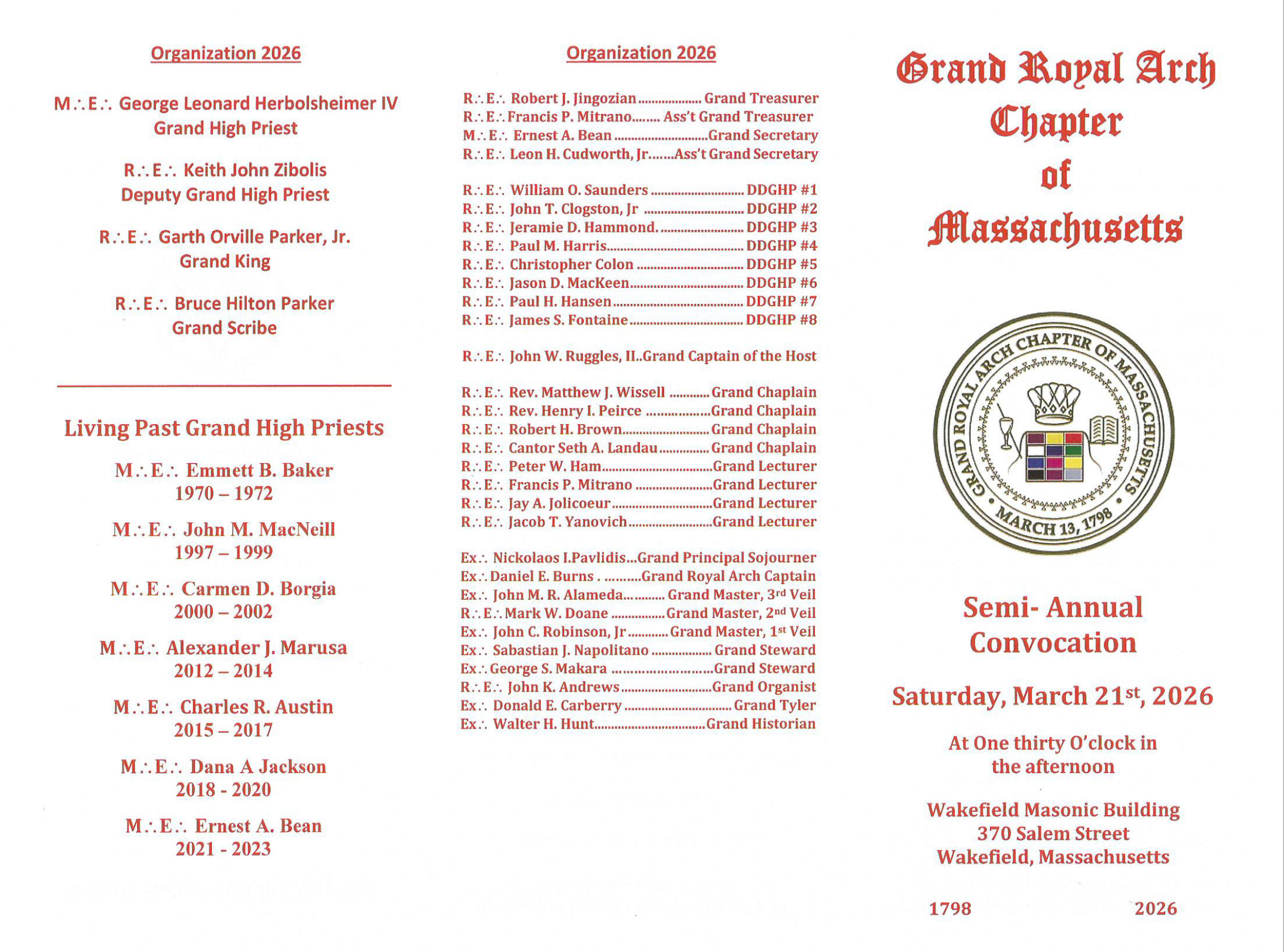 Grand Secretary, M.E. Ernest A. Bean